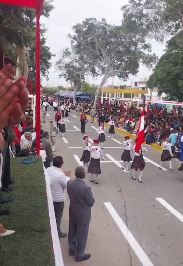 Al empezar el programa, el prefecto regional Carlos Rodríguez, en representación del Poder Ejecutivo, pasó revista a la tropa y rindió honores a la Bandera de Guerra del Perú.